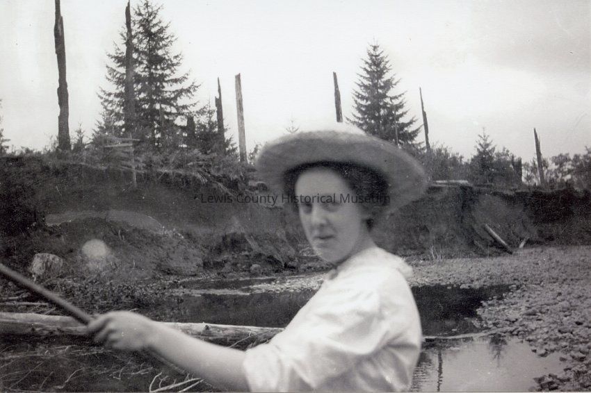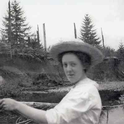 No identification on this young woman fishing in a creek. From the W. F. West Jr. collection. b&w 2011.17Lexicon