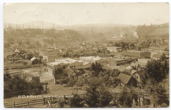 Black & White postcard - Overview of Winlock, WA. Card adressed to Mrs. W.M. Grafton of Centralia, from Bernice Grafton of Winlock, tentative date 1914. 1¢ stamp.Lexicon