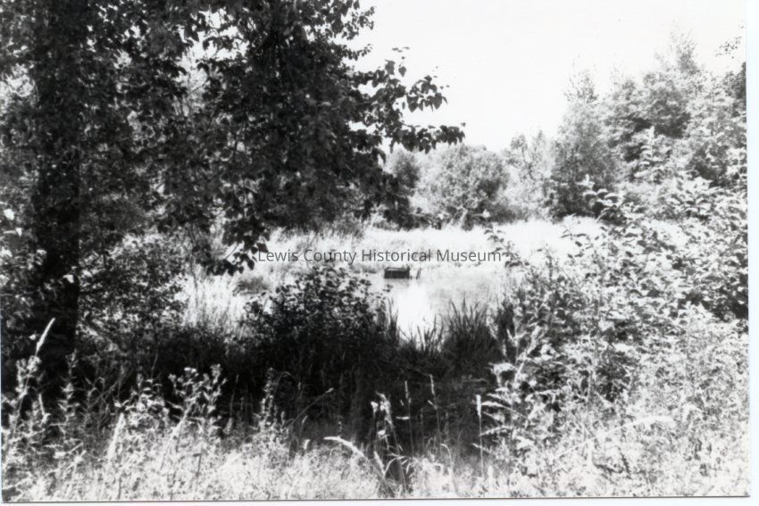Last remains of Snow Lumber Co. Mill Pond, all but filled up now in 1984, Littell, WA. Have negative. Have slide.Collection
