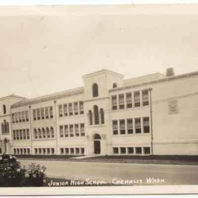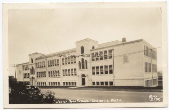 Black & White postcard - Junior High School, Chehalis, WA, dedicated in 1927, was later renamed R.E. Bennet School in 1952 in honor of the former Chehalis School Superintendant. Same as PC2310.Lexicon
