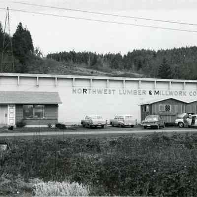 Exterior of the Northwest Lumber & Millwork Company with cars parked in front. Chehalis, WA circa 1970'sCollection