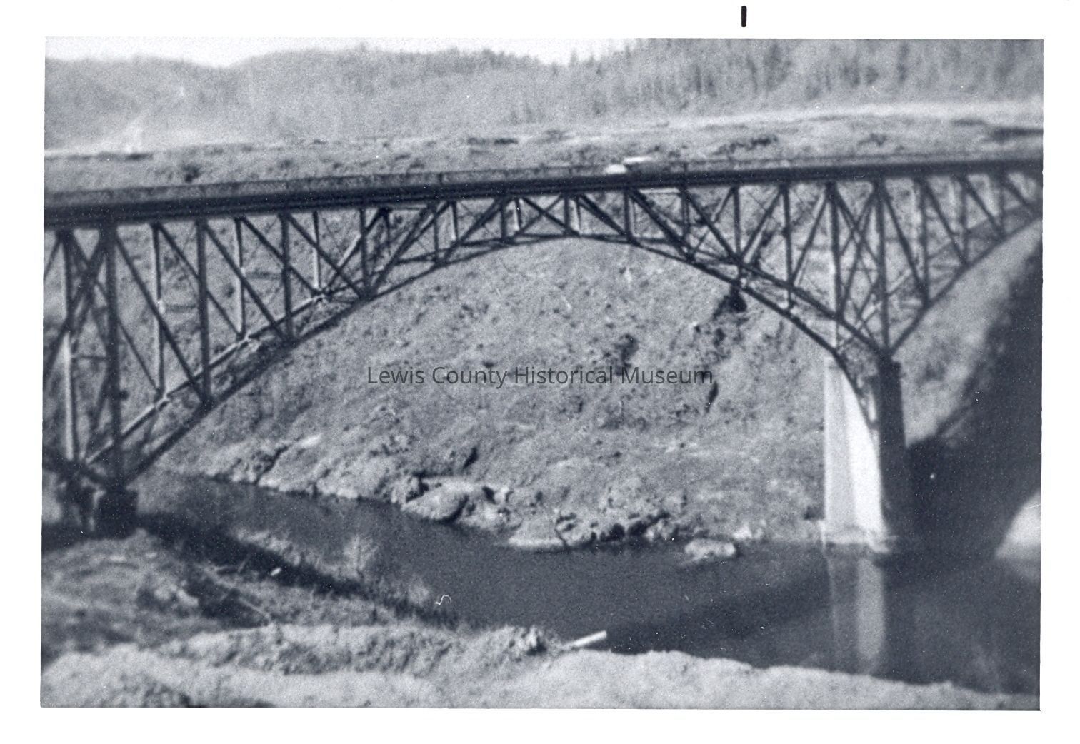 Mayfield Bridge, July 1963 over the Cowlitz River before the Mayfield Dam was filled covering the bridge.Mayfield ,WA. Have negative.Lexicon