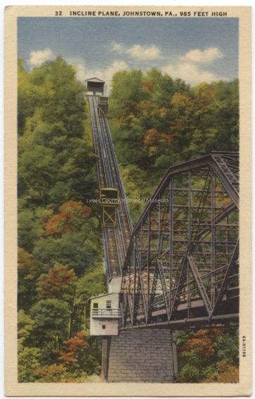Color print postcard - Incline plane at Johnstown, Pennsylvania, 985 feet high. One car goes up, one car comes down.Acquisition
