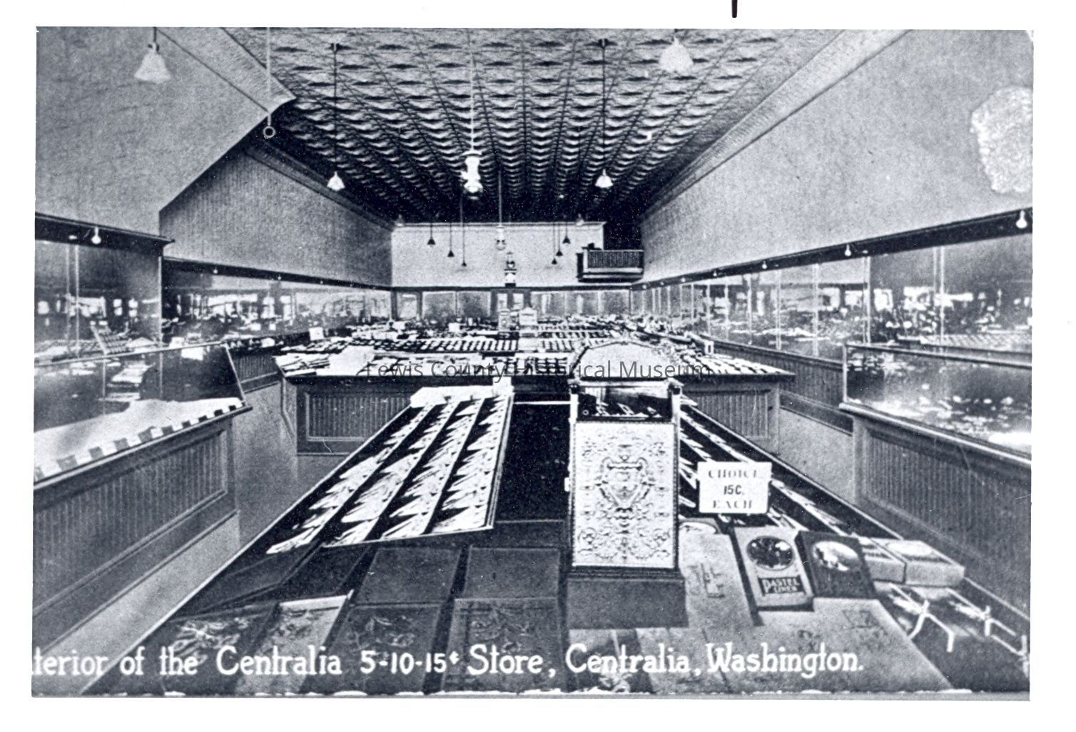 Interior of Centralia 5-10-15 cent Store in Centralia, WA. Landes & Burkpile proprietors. circa 1913. Have negative.Lexicon