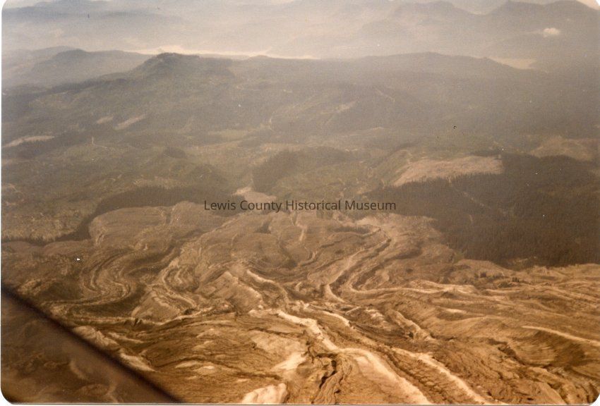 Mt. St. Helens southeast side shows mud flow. Photo by W. L. Mezger, August 21, 1980. Color print. 2009.06Lexicon