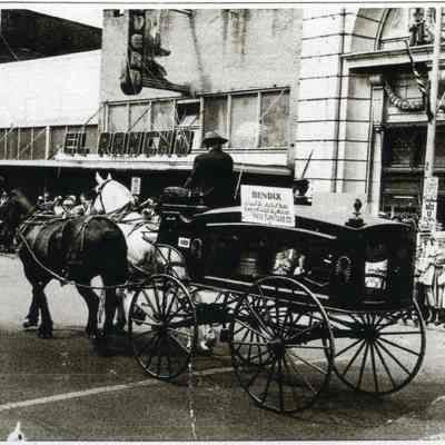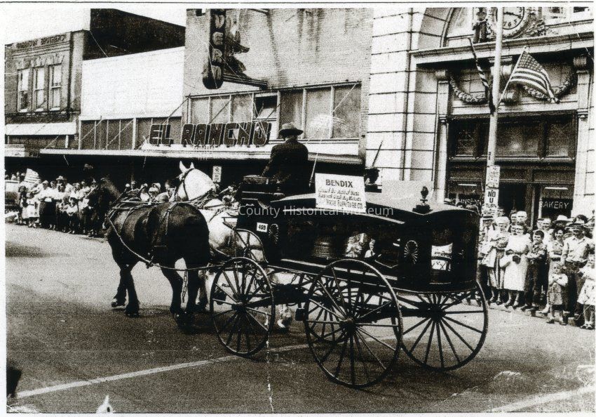 Pioneer Day Parade 1950 or 1951. Horse drawn hearse. Elks Club Photos Donated by Jack Moore Jr.