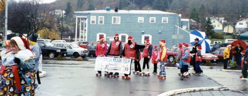 Chehalis Christmas parade Dec 1, 2001. Centralia Skate Club skating along.Lexicon