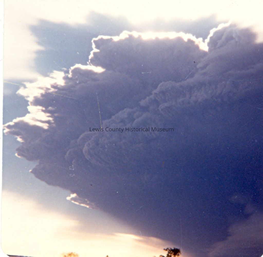 Photo of the initial black cloud from Mount St. Helens explosion May18,1980, about 9:00 a.m. Onalaska, WA. Taken by W.E. SheridanMade/Created