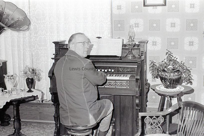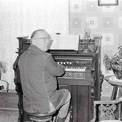 Unidentified gentleman playing a pump organ. Have negative.Lexicon