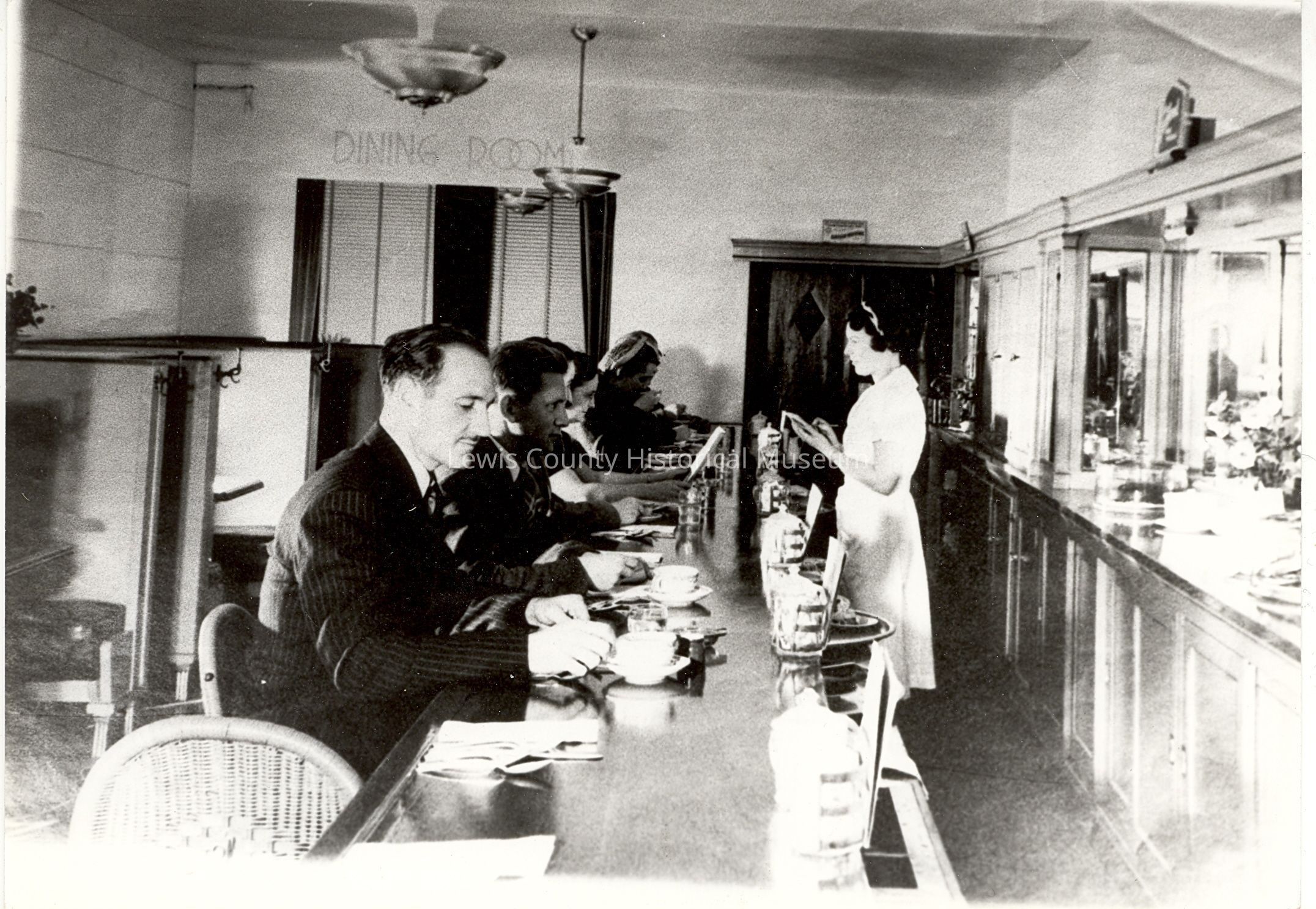 Photo of the old Coffee Shop in the Lewis & Clark Hotel, Centralia,WA. circa 1930-40's Have negative.Lexicon