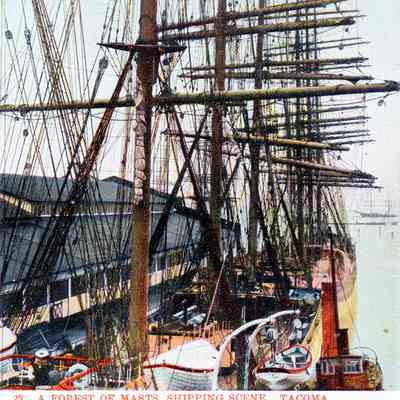 A forest of masts, shipping scene, Tacoma, Washington.Lexicon