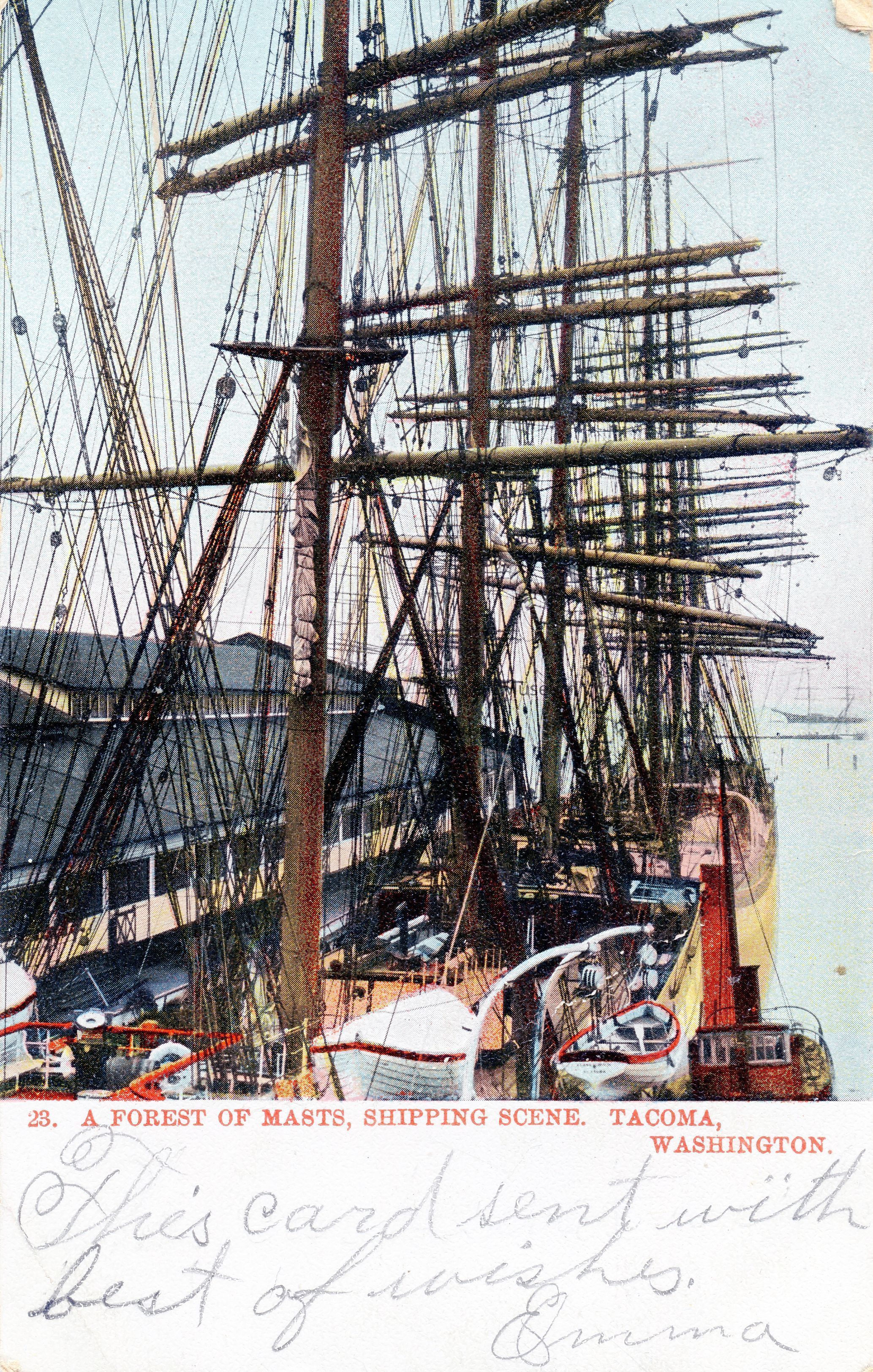 Post Card, Ship Masts, Ships, Tacoma, WACreated By
