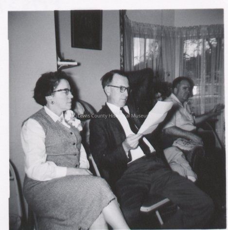 Left to right: Loris Sweany (Sweeney), Gordon Sweany, and Orville Roundtree, May 1959, black and white. Burke collection, 03.22.Collection
