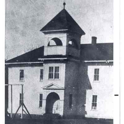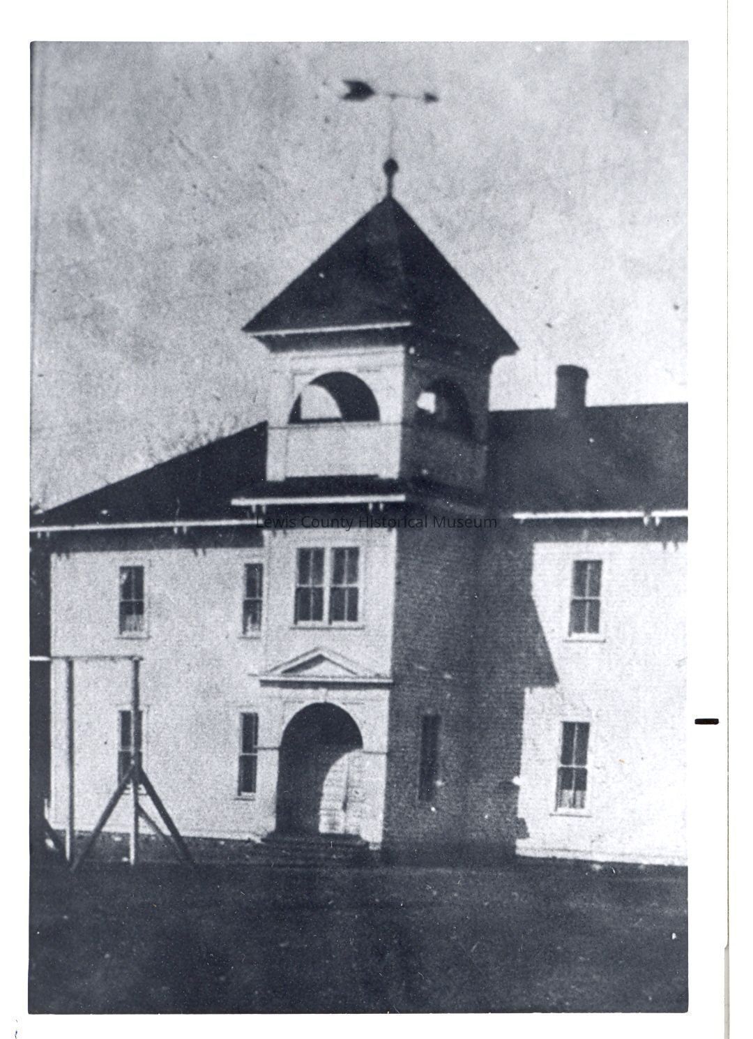 View of the outside of the main part of an early-day school house in Toledo, WA. It was still in use in the early 1930's. Have negative.Lexicon
