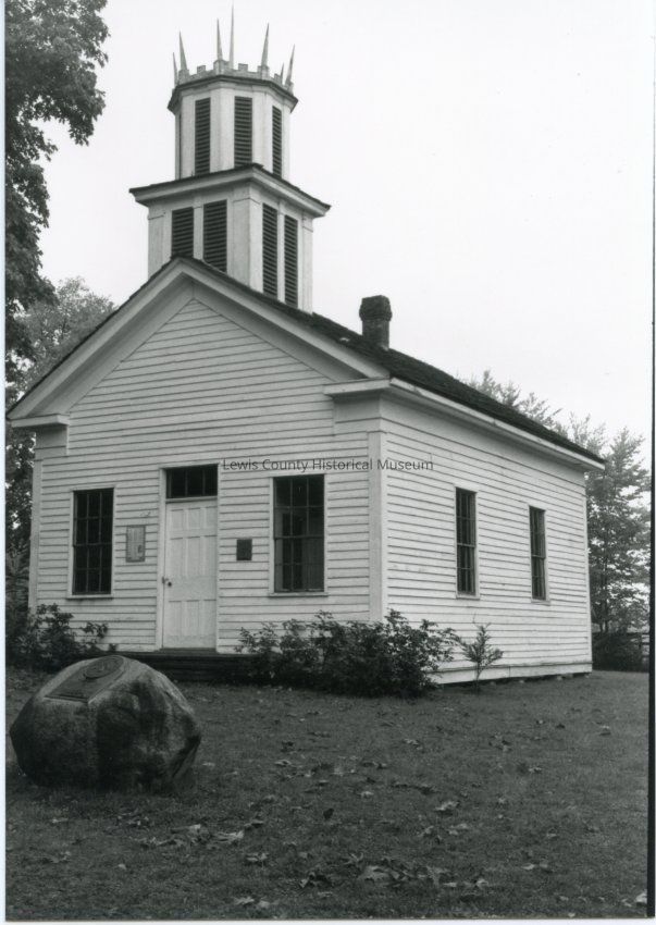 Photo of the Claquato Church, 1986 with the Monument in front. Have negative.Collection