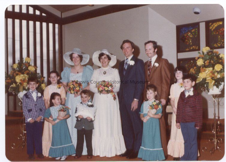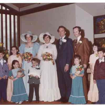 Richard Elfers and bride at their wedding. Jody, Fay's daughter, was maid of honor. Also assorted Weythman grandchildren. 3 1/2x4 7/8, color print, Burke-Roundtree collection, 03.22.Collection
