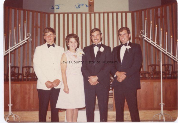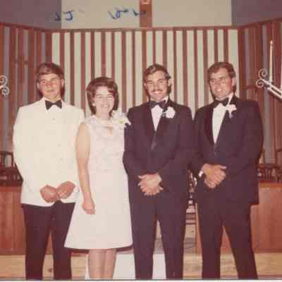 Richard Clayton Stone on left, the groom; Glenna Roundtree Stone, the bride; Michael Lynn Stone and on right, Ronald Steven Stone, June 10, 1972. 3 1/2x4 7/8, color print, Burke-Roundtree collection, 03.22.Collection