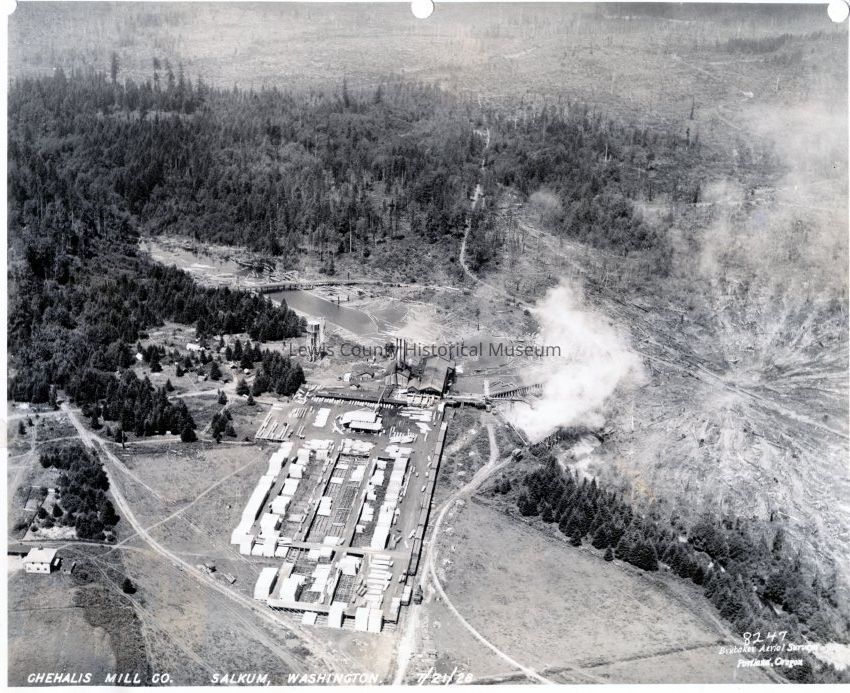 Aerial view of Chehalis Mill Company at Salkum, WA. Taken July 21, 1928.