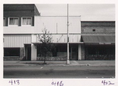 Quick Pawn building at 412 N. Tower, Centralia, formerly used furniture store at 412 N. Tower, at 416. Star used furniture. Photo ca. 1987. 2x3, black and white print, 04.13.Cataloged By