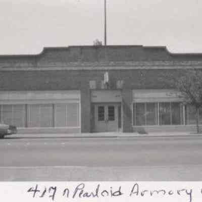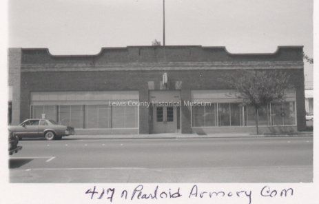 First Armory for Washington National Guard built in 1918 at 417 N. Pearl, Centralia. For many years it has housed Carpenter's Building Local. Photo ca. 1987, 2x3, black and white print, 04.13.Cataloged By