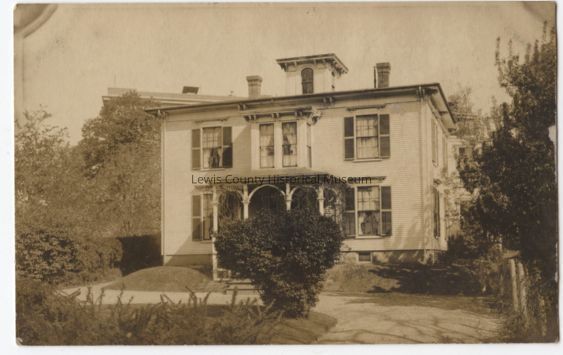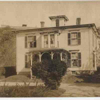 Picture of a very old well kept, colonial type home in a setting of trees. Other buildings appear in the background.Cataloged By