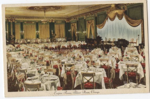 Empire Room, Palmer House, Chicago, Illinois. Postmark: Chicago, Ill., Oct. 29, 1942. 1¢ stamp.Cataloged By