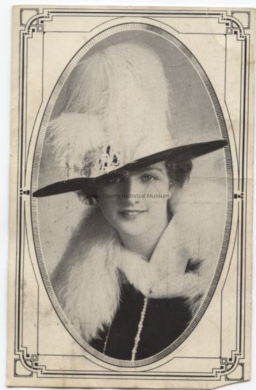 Post Card Advertisment from Miss Ella Field, Centralia, WA. Milliner, 1914. Excellent Women's fashion hats.Cataloged By