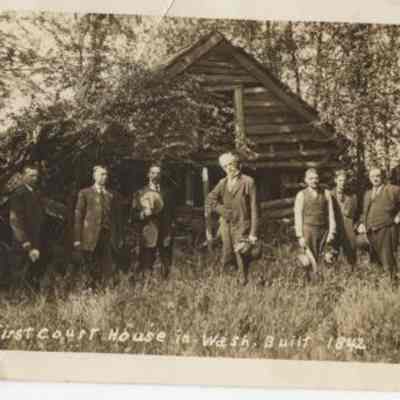 Law & legal affairs, Postcards, Log buildings, Photographs, Photography, Buildings, Courthouses, People, Law enforcement, Postal cardsSearch Terms