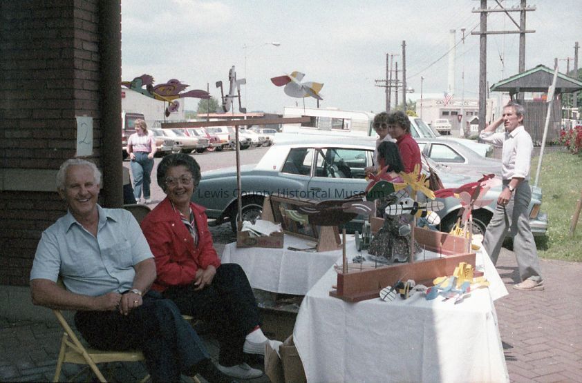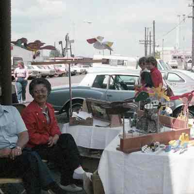 LCHM Krazy Days Arts & Crafts Show. July 1984. Dale and Ann Mauermann with their wind ornaments. Have negative.Collection