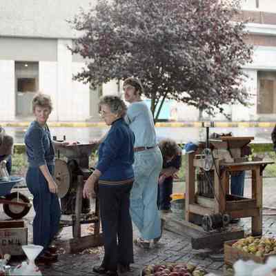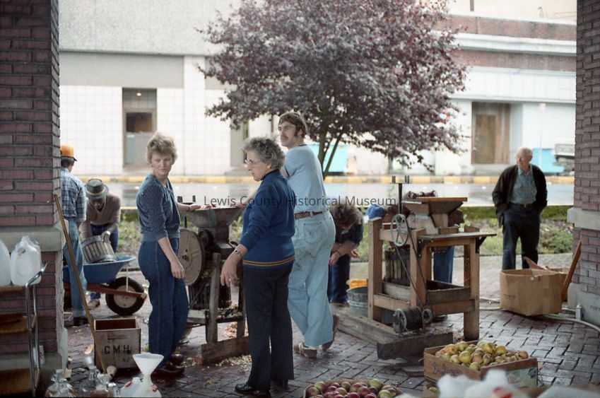 Group of volunteers at the October 1983 LCHM Cider Squeeze. Have negative.Collection