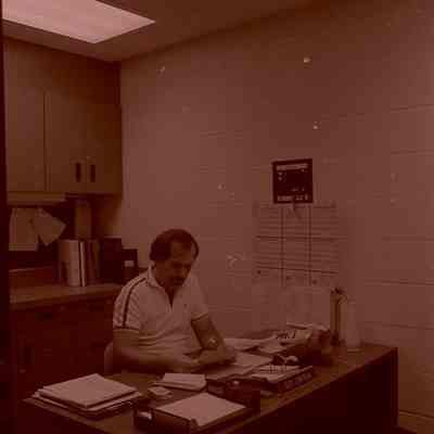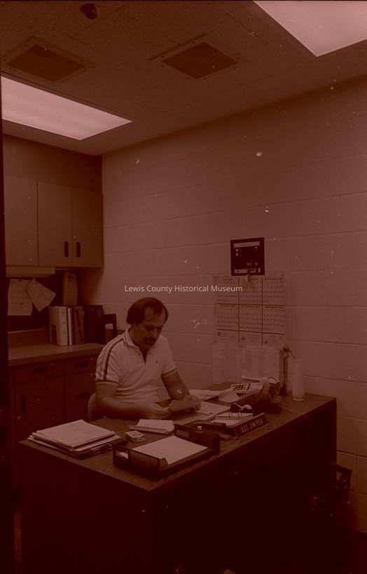 Interior of the new Lewis County Jail, 1986 before it was opened to the public, Chehalis, WA. Have negative.Lexicon