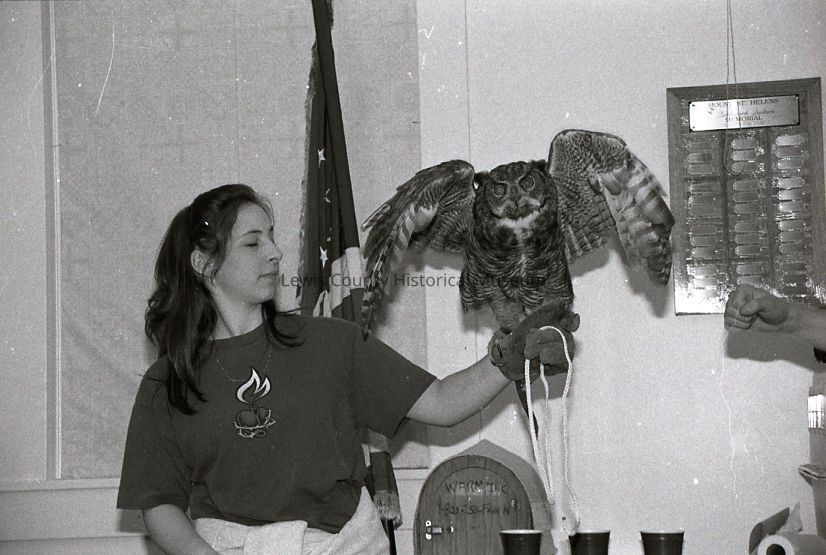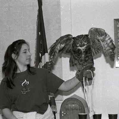 Unidentified young woman holding a bird. Have negative.Lexicon