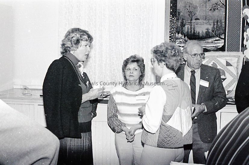 Mrs. Booth Gardner talking with unidentified people. Have Negative.Lexicon