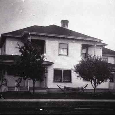 Picture of unidentifies house with two ladies in front of the porch. Have negative.Collection