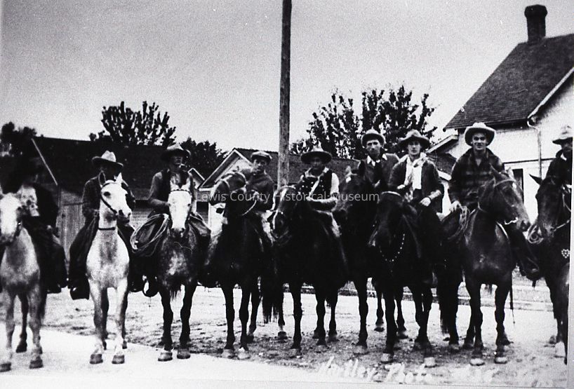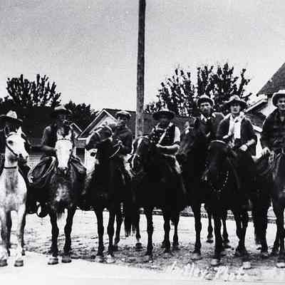 A group of nine men on horses. Have negative.Collection