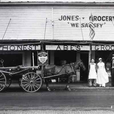 Animals - Horse & Wagon, Businesses, Grocery Stores, Jones Grocery Store, Negatives, Unknown Location, Unknown person/sLegacy Lexicon