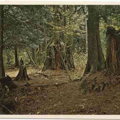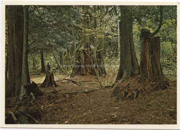 Glossy color postcard - shows giant stumps with trees growing out the top in Western Washington.Lexicon