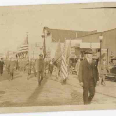 Parades & processions, Postcards, Photographs, Photography, Buildings, Automobiles, People, Flags, Post officesSearch Terms