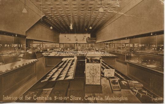 Interior of the Centralia 5-10-15¢ store 209 N. Tower Ave, Centralia, WA., owned and operated by Landers & Burkepile. Circa 1910 - 1915.Lexicon
