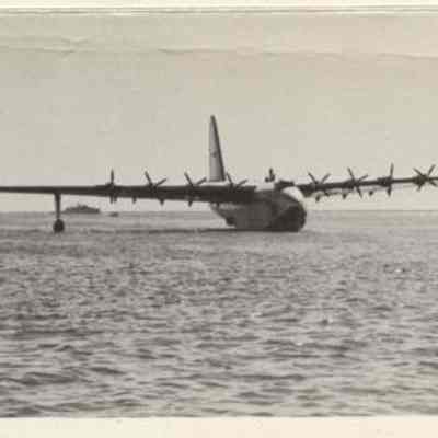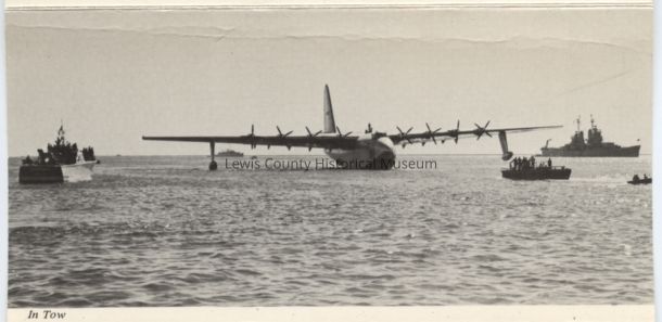 The "Sea-Mule" towing the "Spruce Goose" into the Long Beach Harbor for its maiden flight, November 2,1947. 2013.50.6.1Lexicon