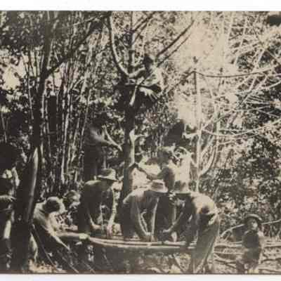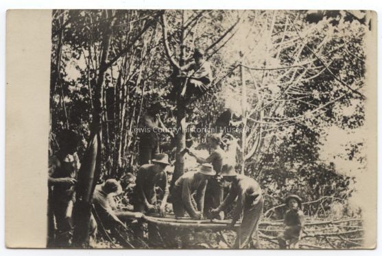 Black & White postcard - Photo of what appears to be a crew peeling shittum bark, location unknown.Lexicon