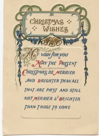 Christmas Greeting, a verse is outlined with forget-me-nots and bells.Cataloged By