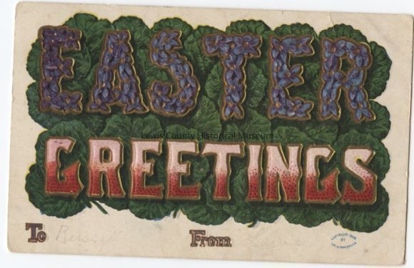 Easter Greeting card, large colorful letters spell out greeting. Postmark: illegable. 1¢ stamp.Cataloged By