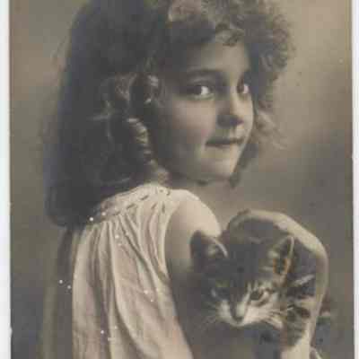 Children, Animals, Cats, Photographs, Photography, Postcards, Postal cardsSearch Terms