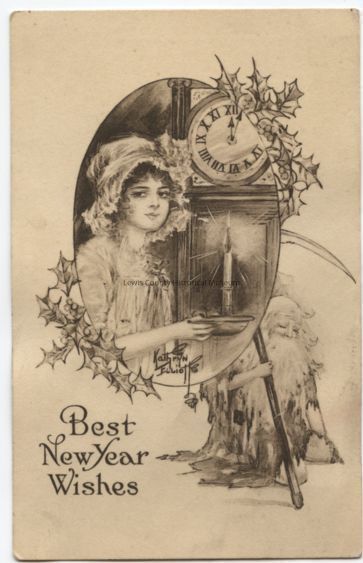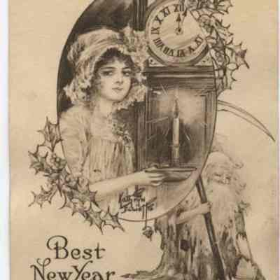 Drawing, Postcards, Clocks & watches, Holidays, People, Scythes, Drawings, Postal cards, New Year cards, CandlesSearch Terms