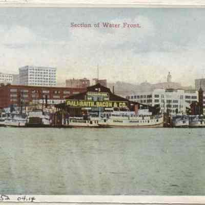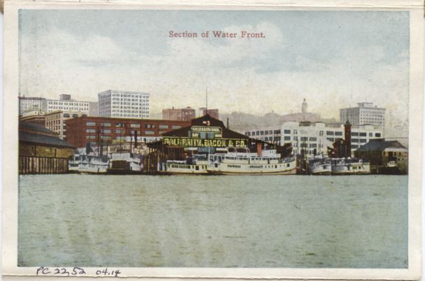 Color postcard - Waterfront at Galbraith Dock, Seattle, WA, looking north, (12th of 20 card in folder, circa 1910 - 1915).Lexicon