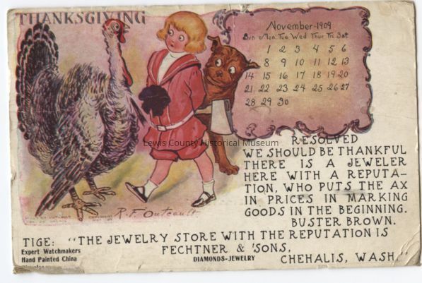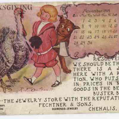 People, Holidays, Chehalis, WA - Postmark, Greeting Cards, Greeting Card - Thanksgiving, Year - 1909
