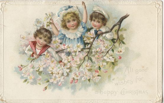 "Color postcard with 3 children on front "All Good Wishes for a Happy Christmas"."Acquisition