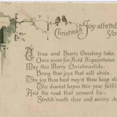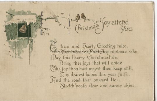 "Christmas postcard, white background, verse "Christmas Joy attend You"Lexicon