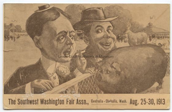 Sepia tone Humorous postcard - The Southwest Washington Fair Association, Centralia-Chehalis, WA, August 25-30. 1913.Lexicon